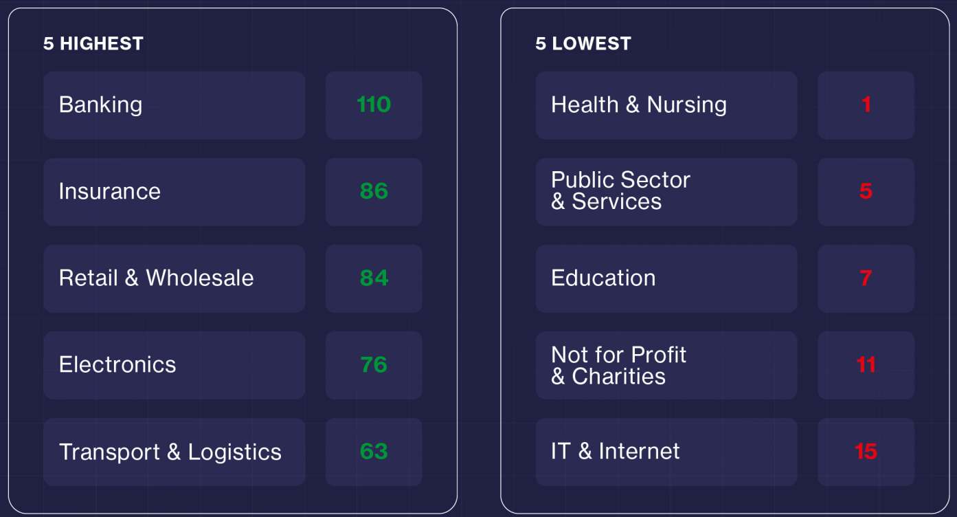 Meanwhile, Banking received an average of 110 applications per job – a huge number that is likely reflective of cuts to the workforce of many global banks. Citigroup, Goldman Sachs, Barclays and, most recently, Deutsche Bank, have all announced job cuts over the past year. Morgan McKinley revealed that there were 79% fewer banking jobs in London in 2023 since Brexit.