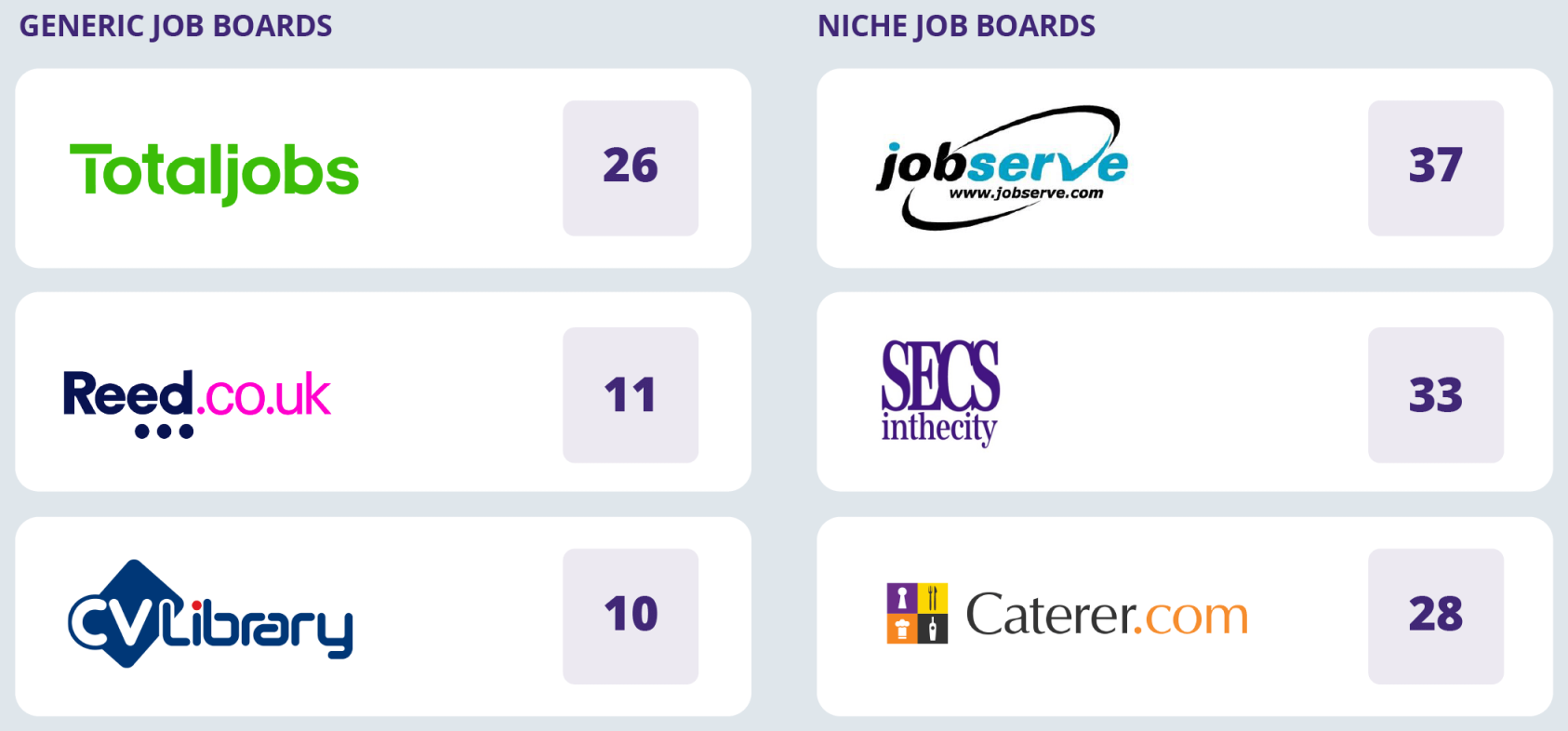 Totaljobs was just behind with 26 but Reed.co.uk and CV-Library received around a third or less of the niche boards with 11 and 10 applications per job respectively.