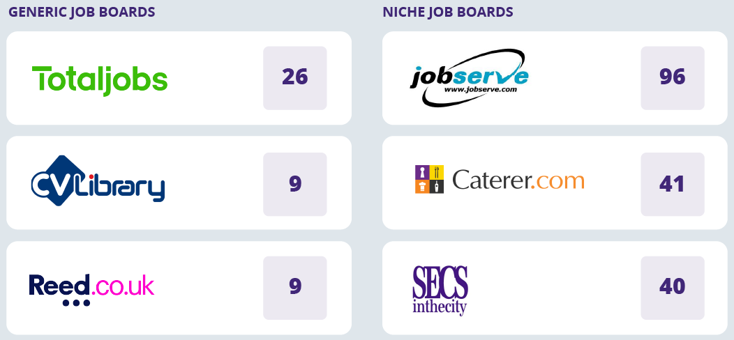CV-Library and Reed.co.uk received a third of TotalJobs’ average, at 9 each.