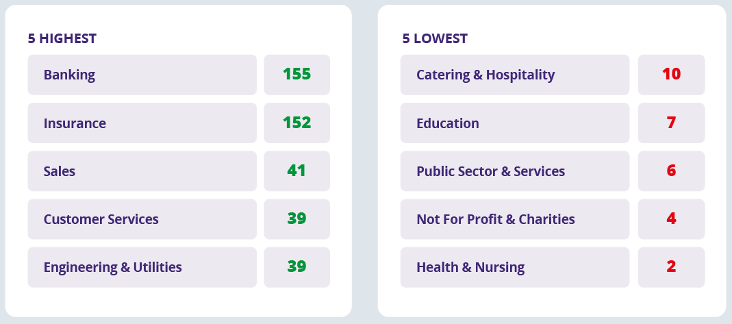 Banking received a huge average of 155 applications per job in Q3 – well over double the number they received in Q2.